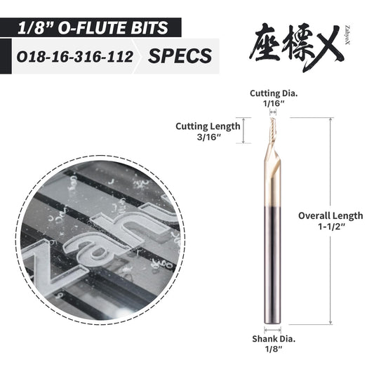 ZahyoX O Flute Upcut Spiral Router Bit 1/4" Shank, 1/8" Cutting Dia, 3/4" Cutting Length, 2-1/2" OVL, Single Flute CNC Bit for Plastic, Acrylic, PVC, ABS
