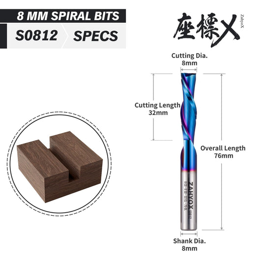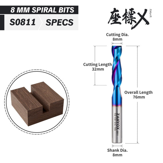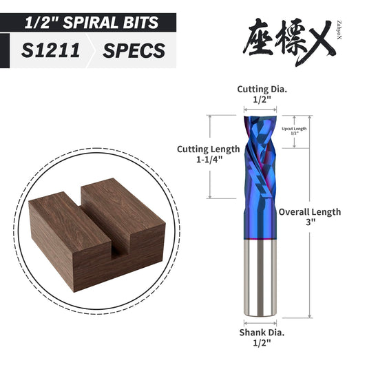 1/2" Schaft Kompression nACo beschichtet CNC Spiralfräser - 2 Schneiden - 1/2" CD - 2" CL - 4" OL - S1203