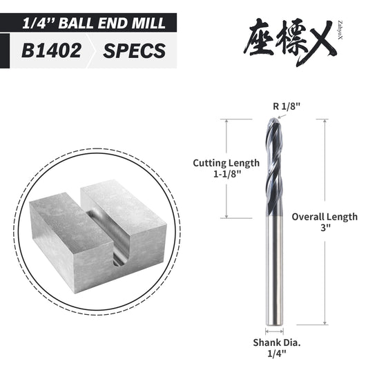 B1402 Aufwärts gerichteter Kugelschaftfräser - 2 Schneiden - 1/4 Durchmesser - 1/4 Schaft - 1-1/8 LOC - 3 OAL - R1/8