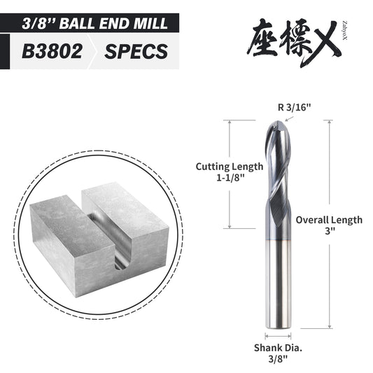 B3802 Aufwärts gerichteter Kugelschaftfräser - 2 Schneiden - 3/8 Durchmesser - 3/8 Schaft - 1-1/8 LOC - 3 OAL - R3/16