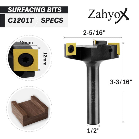 CNC-Oberflächenfräser mit 1/2-Zoll-Schaft | 3-schneidig, 2-5/16 Zoll Schnittdurchmesser | Hartmetall-Plattenfräser mit TiN-beschichtetem Einsatz - C1201T