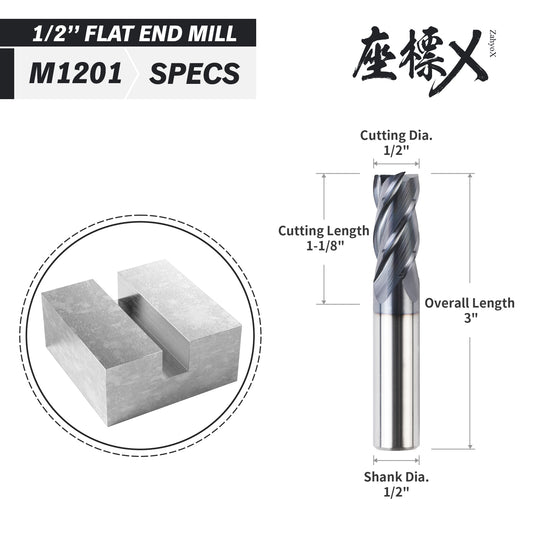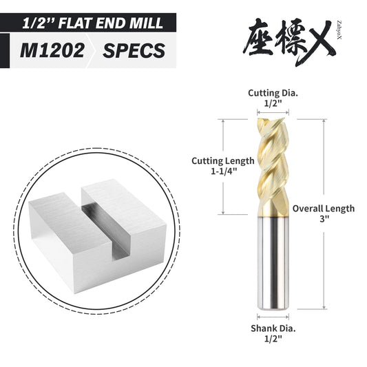M1202 - CNC-Vierkantfräser, Aluminiumschneiden 1/2“ SD x 1/2“ CD x 1-1/4“ LOC x 3“ OAL x 3 Nuten ZrN SC-beschichteter Up-Cut-Fräser