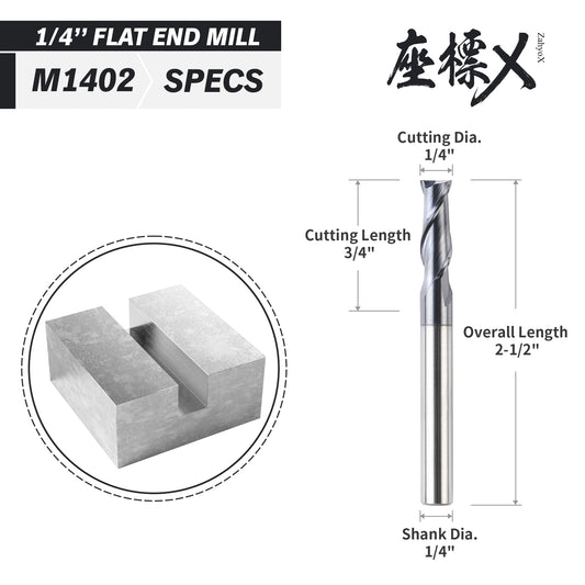 M1402 Vollhartmetall-Schaftfräser mit Gegenschnitt - 2 Schneiden - 1/4 Durchmesser - 1/4 Schaft - 3/4 LOC - 2-1/2 OAL