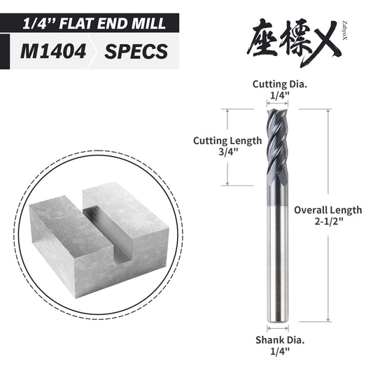 M1404 Vollhartmetall-Schaftfräser mit Gegenschnitt - 4 Schneiden - 1/4 Durchmesser - 1/4 Schaft - 3/4 LOC - 2-1/2 OAL