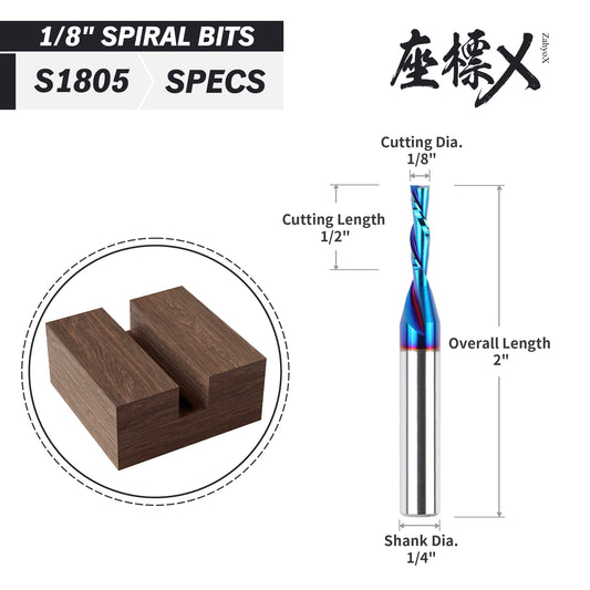 S1441 Vollhartmetall-Spiralfräser mit Aufwärtsschnitt - O-Nuten - 1/8 CD - 1/4 SD - 1/2 CL - 2 OL