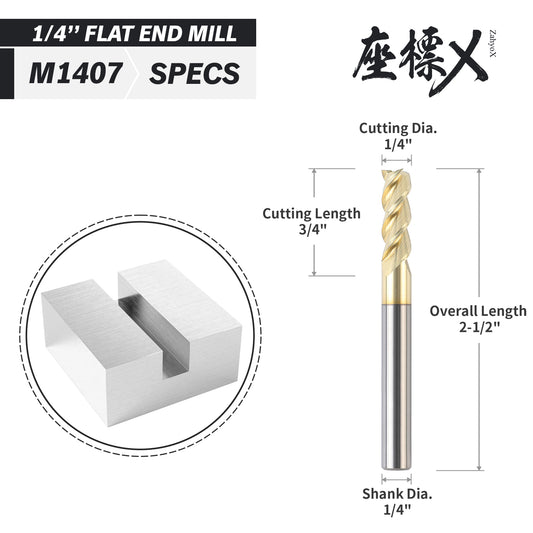 M1407 ZrN-beschichteter Upcut-Schaftfräser für Aluminium - 3 Schneiden - 1/4 Durchmesser - 1/4 Schaft - 3/4 LOC - 2-1/2 OAL