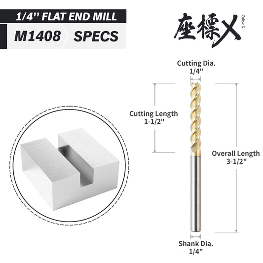 M1408 ZrN-beschichteter Upcut-Schaftfräser für Aluminium - 3 Schneiden - 1/4 Durchmesser - 1/4 Schaft - 1-1/2 LOC - 3-1/2 OAL