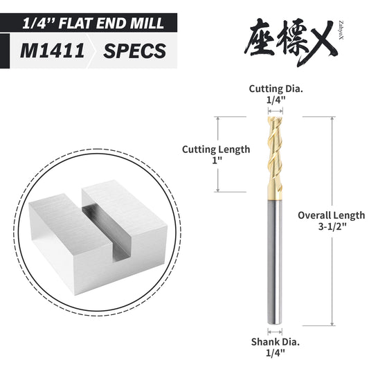 M1411 ZrN-beschichteter Upcut-Schaftfräser für Aluminium - 2 Schneiden - 1/4 Durchmesser - 1/4 Schaft - 1 LOC - 3-1/2 OAL