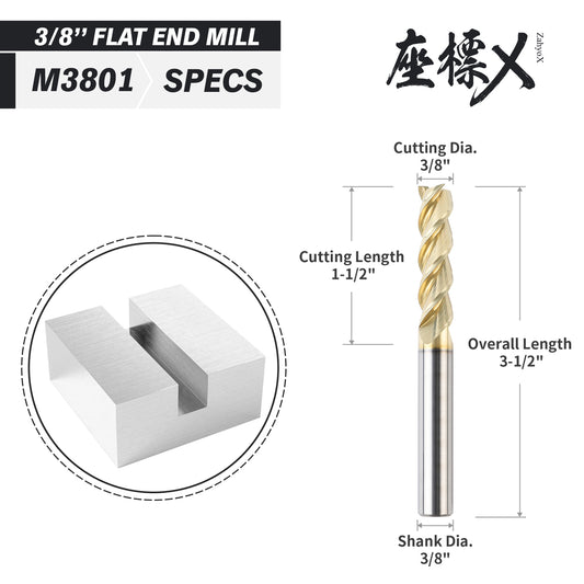 M3801 ZrN-beschichteter Schaftfräser mit Gegenschnitt - 3 Schneiden - 3/8 Durchmesser - 3/8 Schaft - 1-1/2 LOC - 3-1/2 OAL