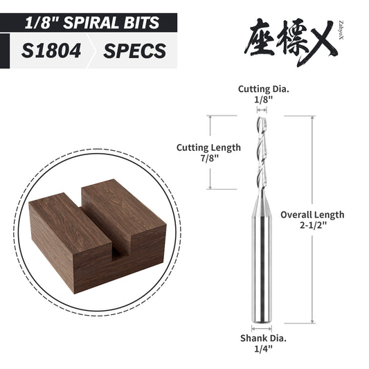 S1442 Vollhartmetall-Spiralfräser mit Aufwärtsschnitt - O-Nuten - 1/8 CD - 1/4 SD - 1/4 CL - 2 OL