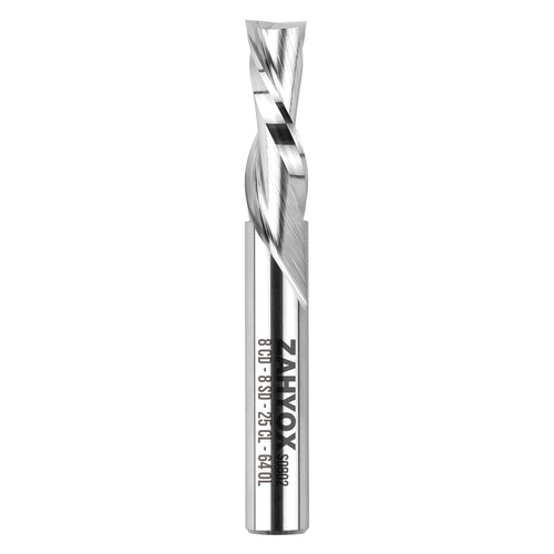 - ジオメトリ仕様: 8 mm CD - 8 mm SD - 25 mm CL - 76 mm OL、2フルート、圧縮スパイラルCNCルータービット、CNCエンドミル