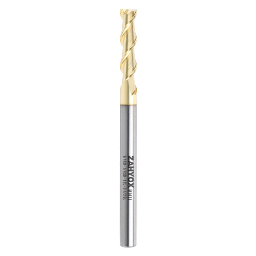 - Geometry Specs: Z-Series, 3 flutes, upcut bit for Aluminum, 1/4" cutting diameter, 1/4" shank diameter, 3/4" cutting length, 2-1/2" overall length.
